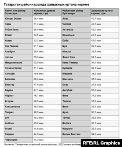 Икътисад министрлыгы 2022 елның гыйнвар-ноябрь айларына Татарстан районнарында һәм шәһәрләрендә халыкның кереме турында хисап чыгарды. Биредә районнарда яшәүчеләрнең сатып алу мөмкинлеге дәрәҗәсе күрсәтелгән.
